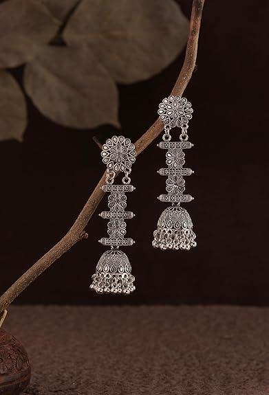 Jewellery Earrings for Women Oxidised Silver Dangler Jhumkas for Girls and Women