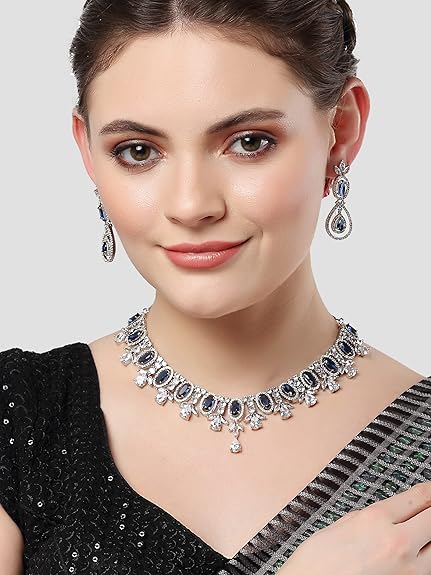 Silver Tone Blue Cubic Zirconia Studded Necklace Set for Women. Our products are designed with high-quality AAA Cubic Zirconia and