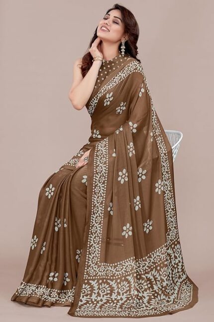 Women’s Latest Chiffon Batik Printed Saree with Blouse Piece
