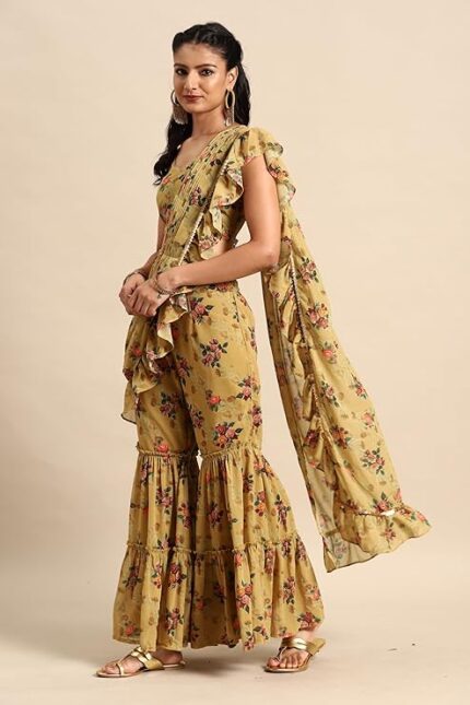 FLORAL DESIGN: Beautiful midi dress featuring vibrant yellow and red floral patterns against a cream-colored background ELEGANT STYLE: Short-puffed sleeves