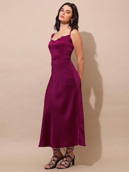 Material:- 100% Satin Stitch Type:- Stitched (No stitching required) Item Length: Maxi length, Style Name: Fit & Flared Dress Package