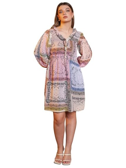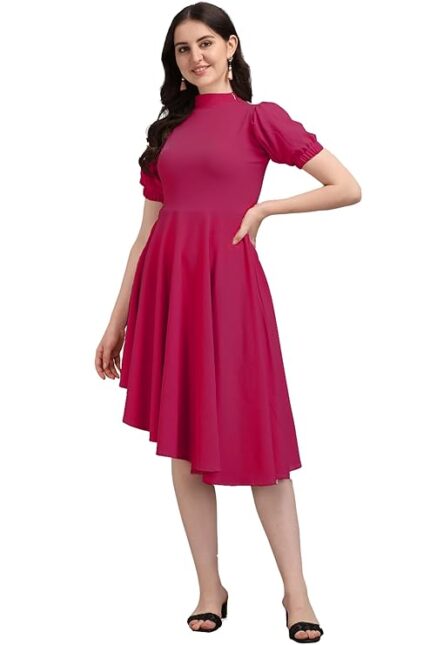 Material:- 100% Georgette Stitch Type:- Stitched (No stitching required) Item Length: Knee length, Style Name: Fit & Flare Dress Package