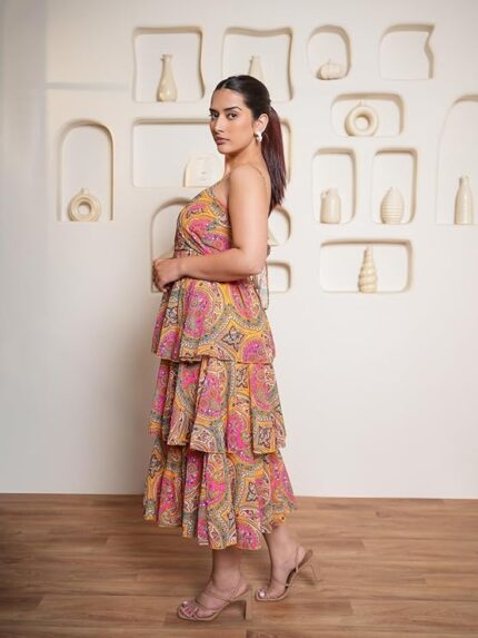 Material:- 100% Georgette Stitch Type:- Stitched (No stitching required) Item Length: Below knee length, Style Name: Layered Dress Package Content: