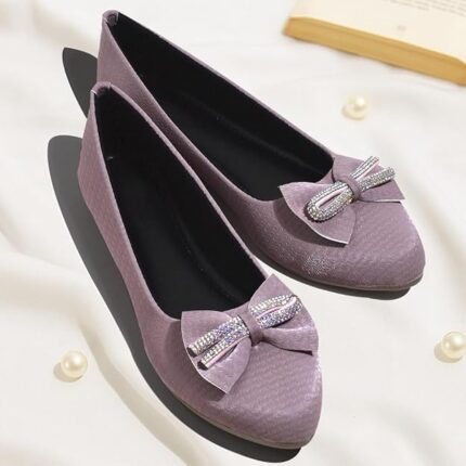 Women & Girls | Sparkle Bow Ballet Flats | Comfortable Slip-On Belly Shoes | Flat, Lightweight, Pointed Toe | Office, Casual, Formal Wear