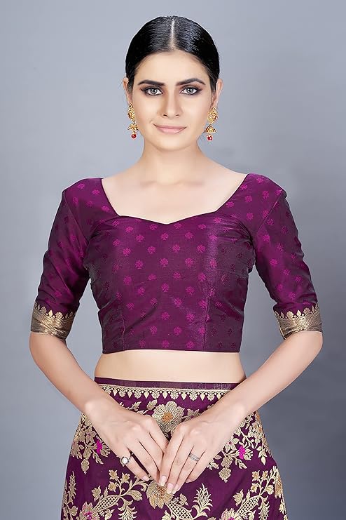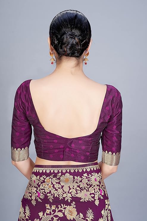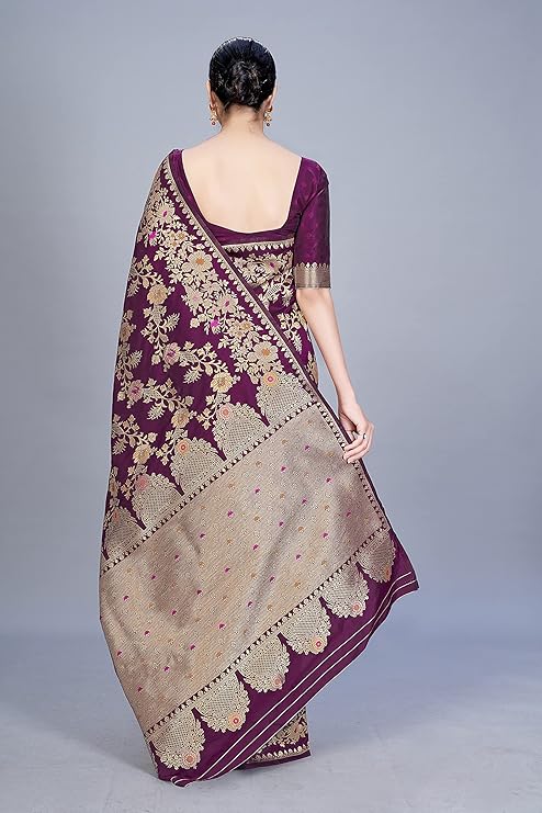 Product Highlights : Fabric: Banarasi Silk Blend (Saree & Blouse) || Work: Zari Woven (Saree), Zari Woven (Blouse) || Colour: Saree –Purple | Blouse – Purple || This Banarasi Silk Saree has Woven with intricate zari motifs and a rich pallu.