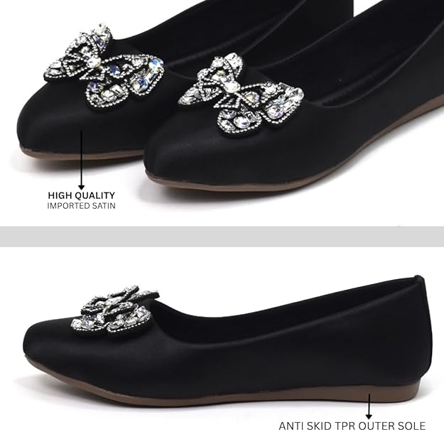 Bellies for Women | Pointed Toe Ballet Flats with Stone Bow | Soft, Comfortable, Lightweight Slip-On Belly Shoes for Casual, Office, Party & Ethnic Wear