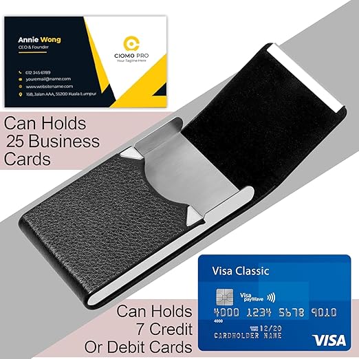 • Dimension :9 x 1 x 6 Cm , Suitable for most standard business visiting card, can store 25 Business and visiting card around ,7 bank cards. easy to carry.