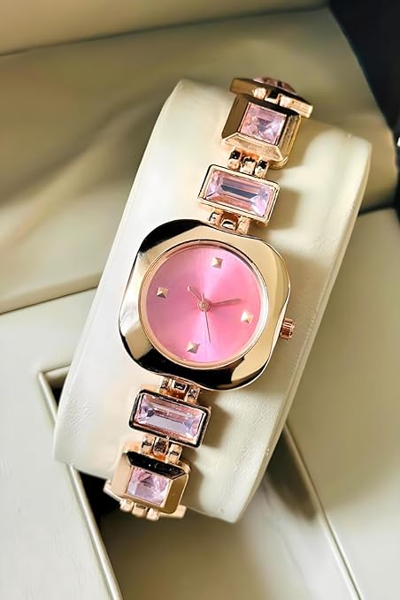 • Elegant Design: Stylish square case with a stone-studded bracelet strap, offering a luxurious and modern look for women and girls.