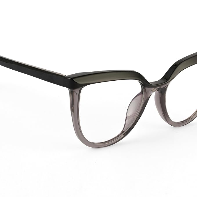About Frame :- Material : TR90 with Metal Filling | Type : Cateye | Color : Grey/Black | Lightweight : Yes | Temple Spring : Yes. These blue light blocking glasses are made of TR90 and filling with Metal. Metal frames have a very minimalist look and are generally a lot thinner and more lightweight frames. It looks Classic on women.