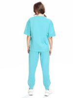 Top: The t-shirt top offers a relaxed fit with a round neckline and short sleeves, ensuring ease of movement and a laid-back look.