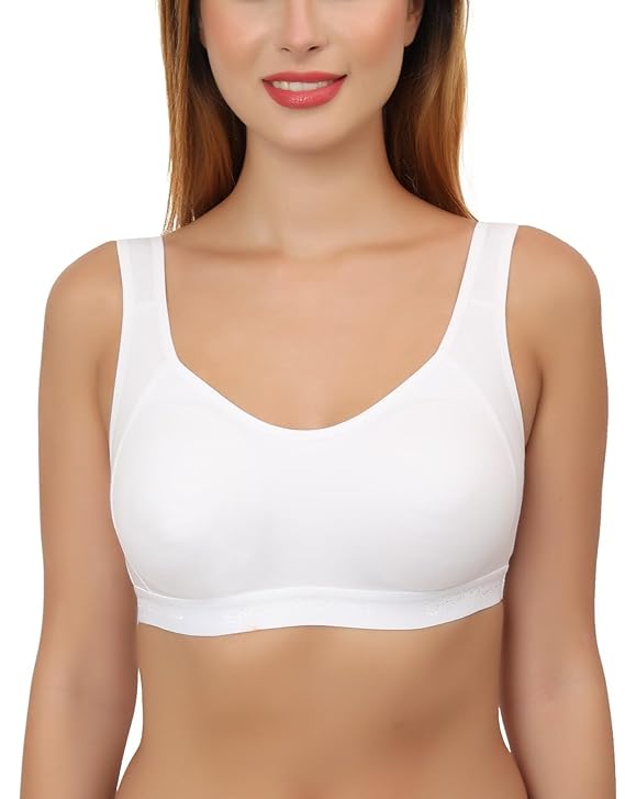 BRA TYPE: Sports Bra Non-Padded Wirefree design for light fit & comfort all day long. Cotton sports bras designed for girls and women feature a convenient slip-on design without any hooks, Crafted in cotton polyester for maximum stretch and comfort