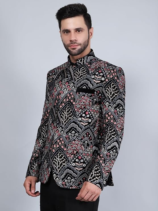Woven Floral Silk Blend Blazer for Men – Versatile Ethnic Wear for Weddings & Special Occasions