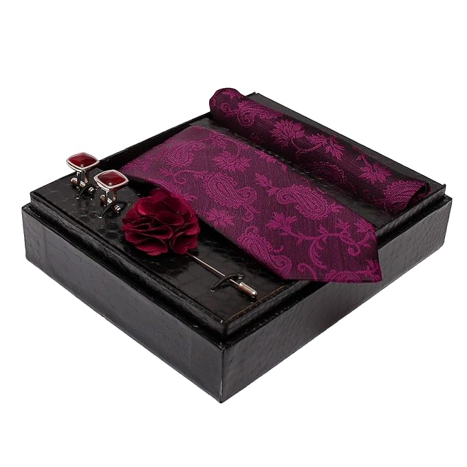 Be the first to review “Micro Silk Neck Ties Set with Cufflinks Flower Pin, Pocket Square & Black Gift Box, Combo Necktie Sets for Office Wear, Formal Suits & Weddings” Cancel reply