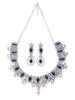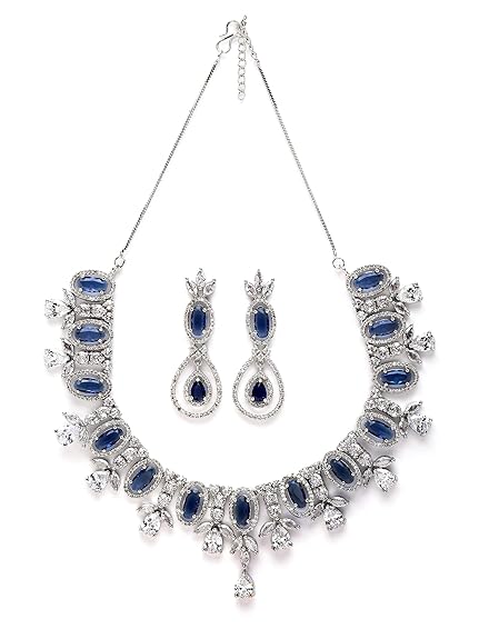 Silver Tone Blue Cubic Zirconia Studded Necklace Set for Women. Our products are designed with high-quality AAA Cubic Zirconia and these products are enhanced with plating that are skin-friendly & with love to reach your heart.