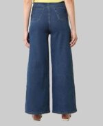 Dark shade Denim Straight Fit High Rise Jeans Button & Zip closure, and 4 pockets.