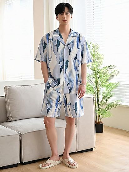 Mens and Boys Rayon Co Ord Set | Trendy Night Dress | T Shirt and Short Set Combo Lounge | Stylish Summer Travel Wear | Matching Two-Piece for Vacation