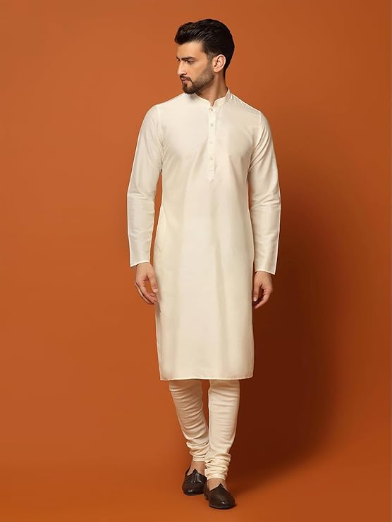 LUXURIOUS FABRIC – Crafted from premium silk blend jacquard fabric with a textured pattern, this kurta dhoti set offers breathable comfort and a rich festive appearance.