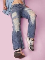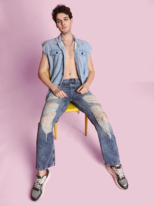 Men’s Light Blue Ripped & Frayed Flared Jeans – Distressed Streetwear Denim Original price was: ₹3,487.00.Current price is: ₹1,560.00.