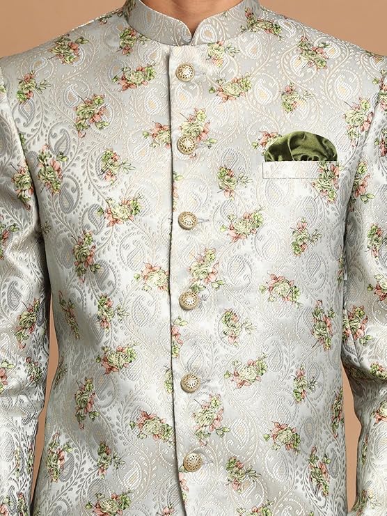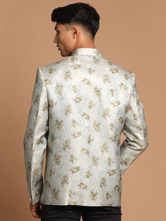 • Fabric: Silk Blend | Contents: A Floral Printed Silk Blend Jodhpuri Coat. The Threads of The Fabric Is Woven Tightly And Has A Long Lasting Sheen, This Jodhpuri Is Deservingly Called Prince Coat.
