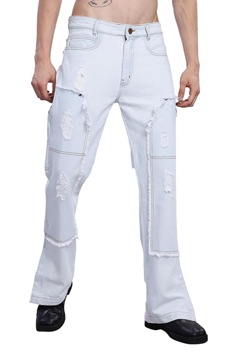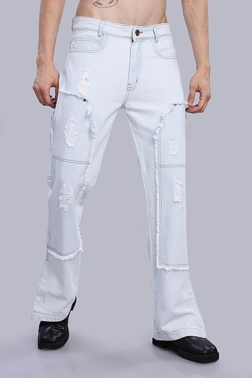 Distressed & Frayed Design – Stylish ripped patches with frayed details for a rugged look.
