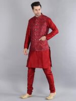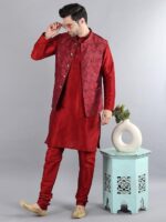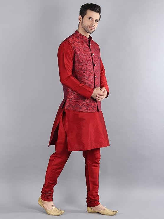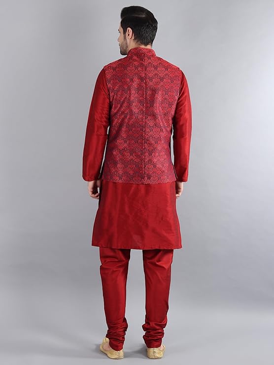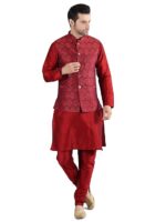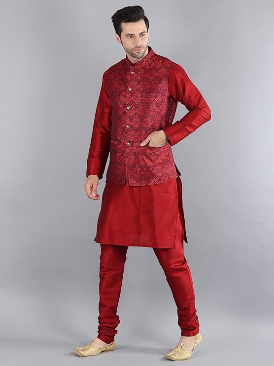 Men’s Silk Blend Kurta Pajama with Designer Ethnic Nehru Jacket/Modi Jacket…