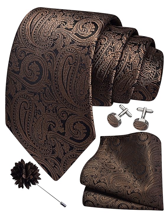 Mens Tie and Lapel Pin Paisley Necktie Hankerchief Cufflinks Set for Men