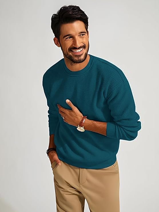 Classic Round Neck Design – Timeless crew neck style pairs perfectly with shirts, jackets, or worn on its own for versatile styling.