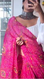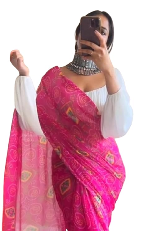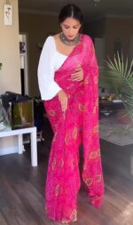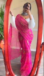 Be the first to review “Pink Bandhani Georgette 1 Minute Pre Pleated Digital Print Saree With Prined Unstitched Blouse”