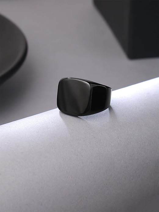 Rings for Men Stainless Steel Black Ring Square Shaped Crystal Black Steel Ring for Men and Boys.