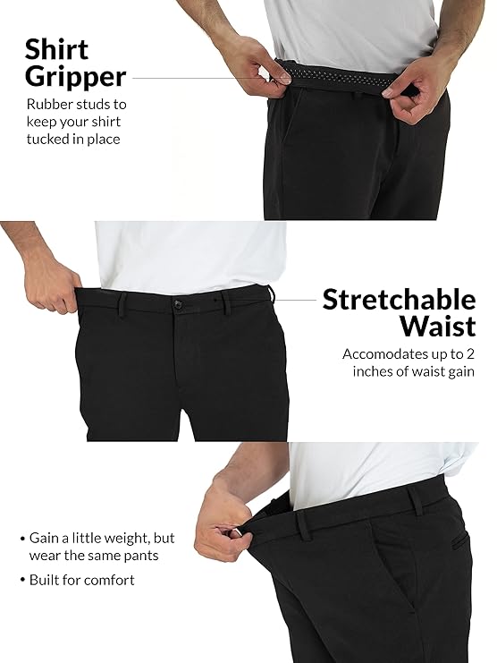 STRETCHABLE WAIST SIZE: Pant waist is the same as actual waist when measured with a measuring tape. In doubt, order a size smaller, as the lycra stretch fabric ensures that the waistband STRETCHES UP TO 2 INCHES extra