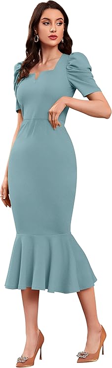 Be the first to review “V-Neck, Bodycon Dress with Short Puff Sleeve and Mermaid Hem, Calf Length/Midi Length/Knee Length Casual, Office Dress” Cancel reply