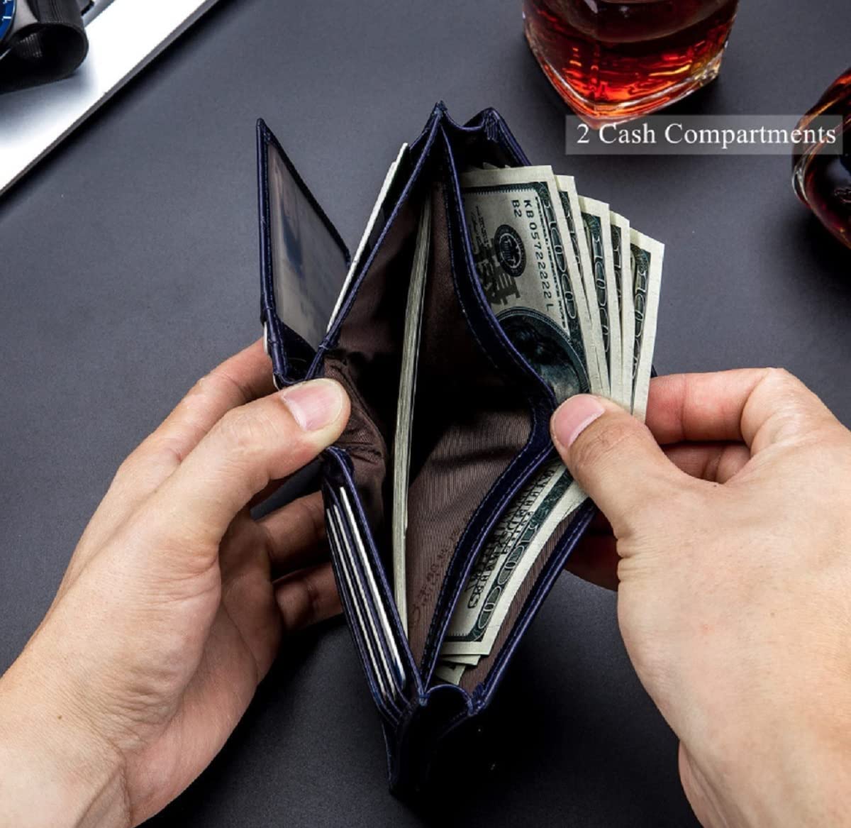 Men’s Wallet- Keep all your essentials neat and organized in this stylish wallet. It’s typically a Bi-fold wallet. It has 15 card pockets including multiple secret pockets, 2 bill pockets, 1 ID window in over flip.
