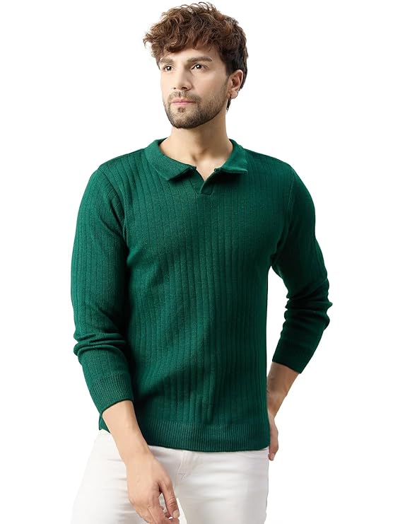 Stylish Sweater: This men’s sweater features a ribbed knit design that adds texture and visual interest to your casual outfits.