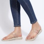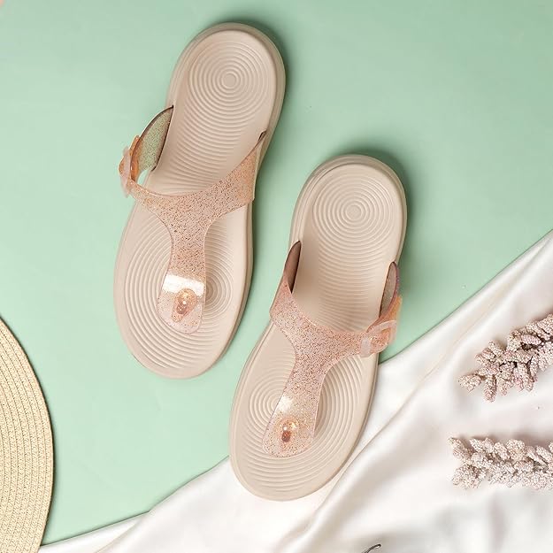 Trendy t-strap flip flop for women with glitter finish – elevate your casual look with these stylish t-strap sandals for women, featuring a glittery upper and toe post detail. The elegant design adds a modern touch to your daily outfits, making them ideal flat slippers for women and girls who want both comfort and fashion in one pair.