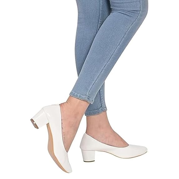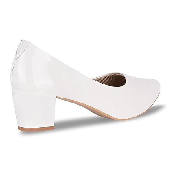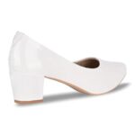 VERSATILE DESIGN: Classic block heel pumps available in three elegant patent finishes black pink and white perfect for office wear and formal occasions