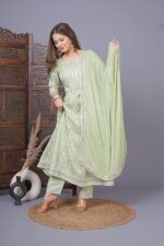 Be the first to review “Women Rayon Anarkali Embroidered Printed Kurta Pant and Dupatta Set”