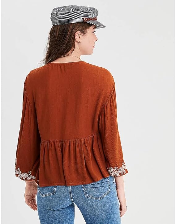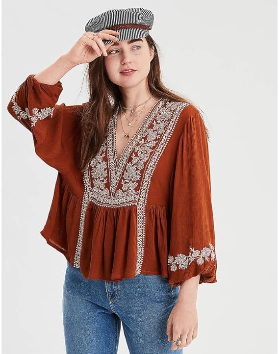 Neckline: V-Neck||Sleeve Length: Bell Sleeve||Sleeve Type: Drop Shoulder ||Style: Casual, Colour: Brown || Package content: 1 women Top.