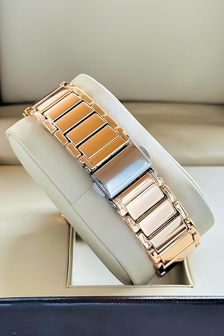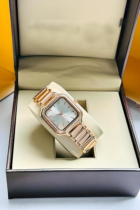 • Square watch dial for a unique and modern aestheticBeautiful rose gold stainless steel case for a touch of luxury