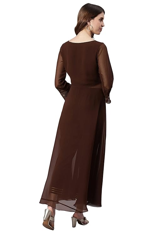 Women’s Brown Georgette Ethnic Motifs Kurta Set