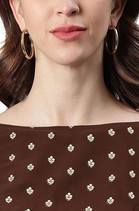 • Style:-Kurta Length: 50(inch), Bottom Length: 37(inch) | Pattern: Ethnic Motifs | Occasion: Festive | Type: A-Line | Sleeve Type: 3/4 Sleeve Flared Sleeves | Color: Brown