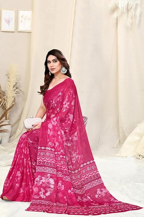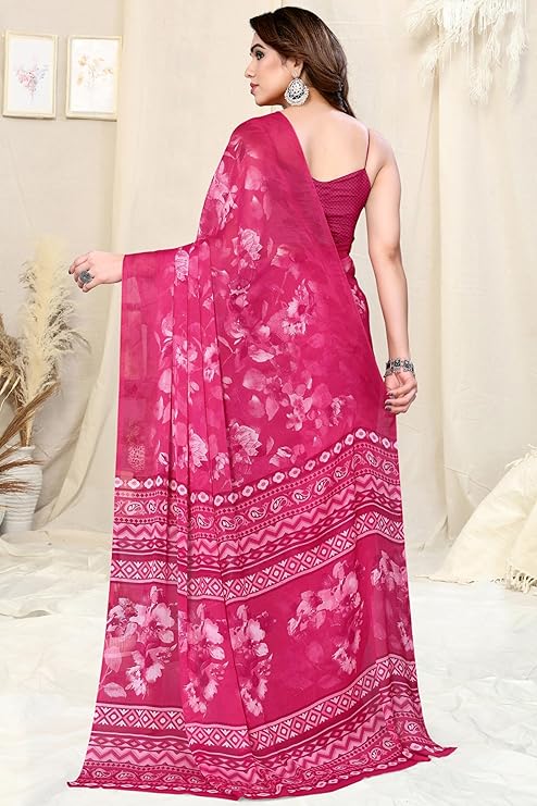 Women’s Chiffon Floral Printed Saree with Blouse Piece