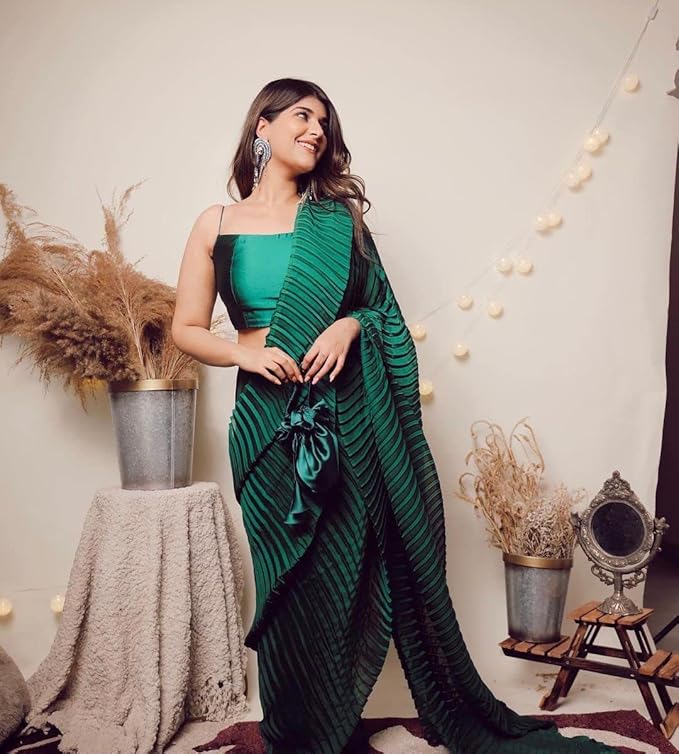 Whole Saree is Crushed Exact As Shown In Image & This is Satin So it’s Shining Cloth