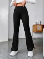 Women’s & Girls’ Solid Side Split Hem Flare Leg Bell Bottom Pants Trouser