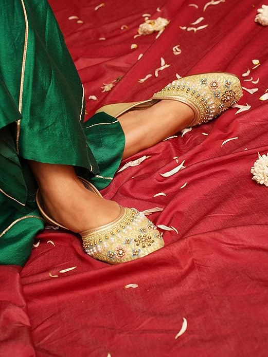 Elegant Handcrafted Juttis – Exquisitely designed with intricate stone and bead embellishments, adding a royal touch to your ethnic look.
