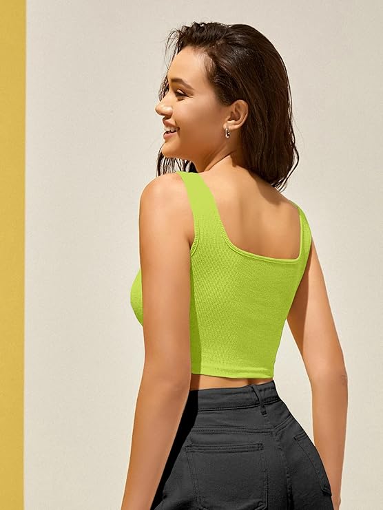 Chic Sleeveless Style: Elevate your wardrobe with our sleeveless crop tops for women. Featuring a classic square neck, backless design, and strappy details, these tops are the epitome of stylish innerwear. They come in solid colors, have a cropped length, and a double layer for a sexy, slim fit.