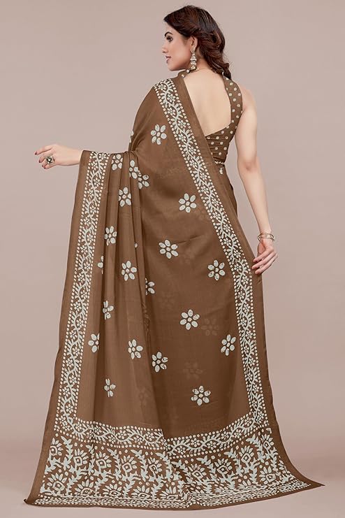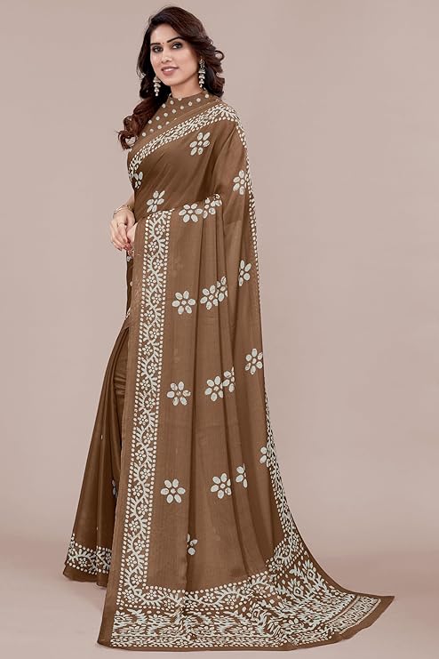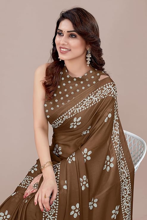 Women’s Latest Chiffon Batik Printed Saree with Blouse Piece