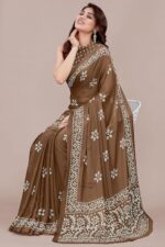 • Color :: Saree – Brown, Grey | Blouse – Brown