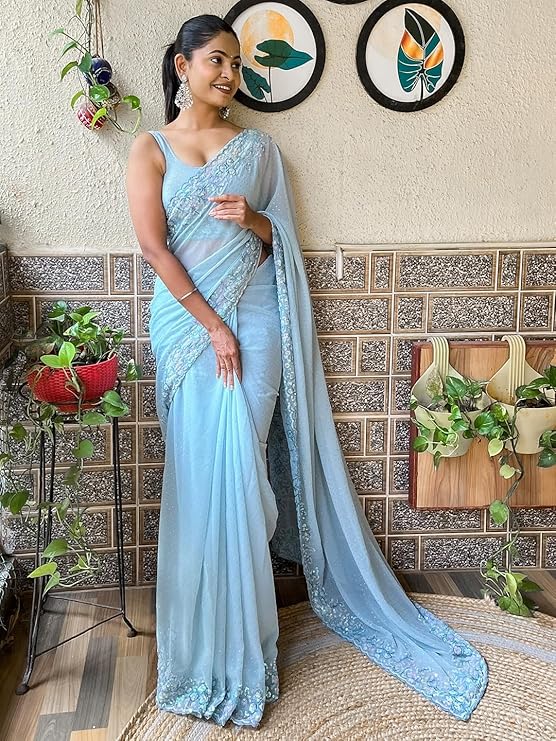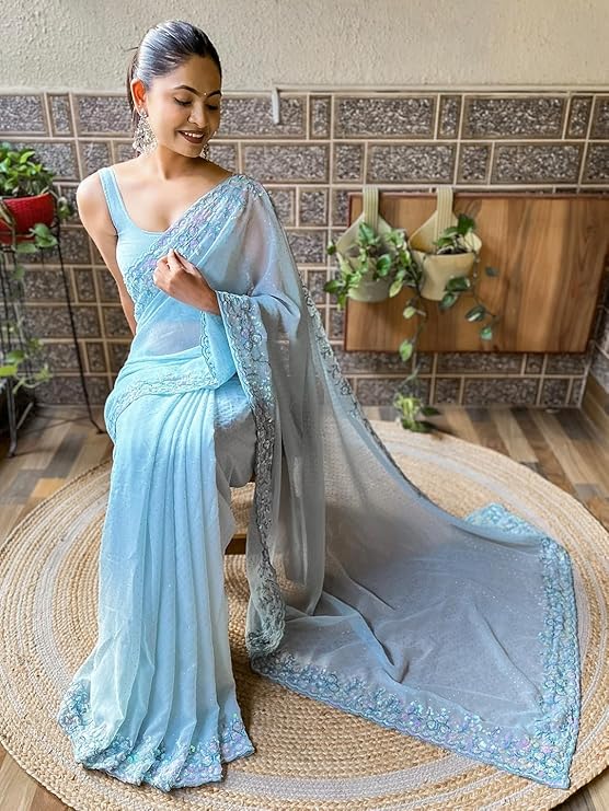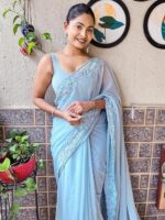 Color : Light Blue Saree with Light Blue Blouse Piece