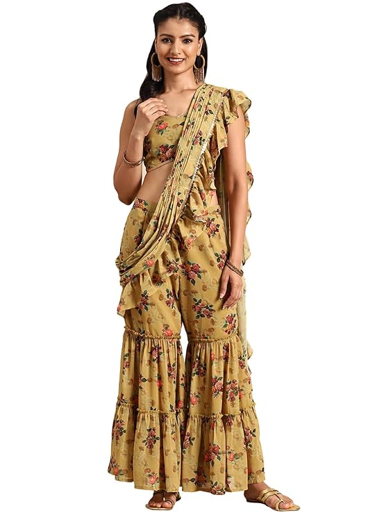 Women’s Printed Georgette Ready To Wear Saree With Stitched Blouse