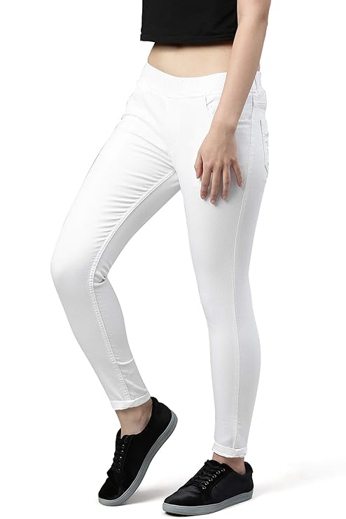 Six Color Options: Grey, Beige, White, Light Blue, Dark Blue and Regular Blue; Silky Soft Denim Jeggings for Womens Stretchable Cotton Lycra fabric and Elasticated Waistband. Traditional 5 Pockets – 2 back pocket and 3 on front including a coin pocket. Plus Size Jeggings option also available, click on the drop-down size list above. Size options include 28, 30, 32, 34, 36, 38, 40, 42, 44, 46. Fly Closure: faux / No Zip.